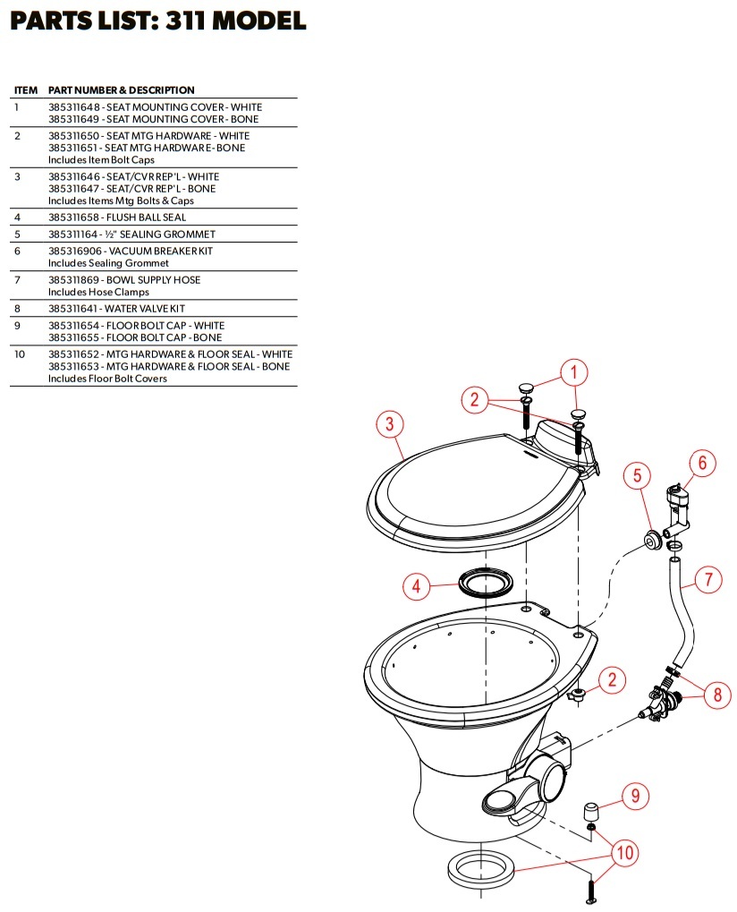 - Easy installation with standard RV toilet mounts