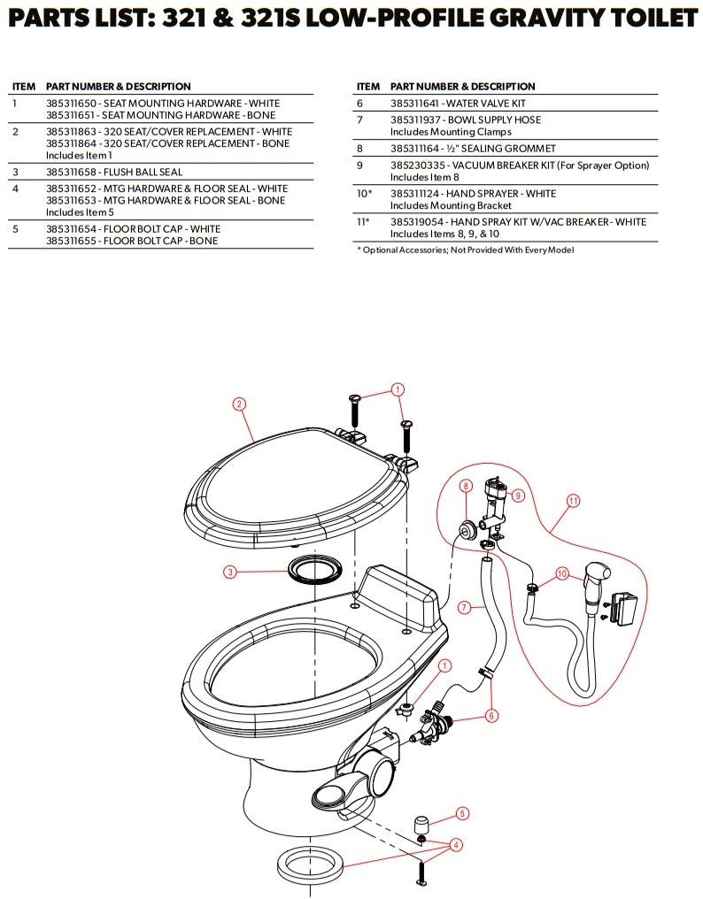 Dometic 321 Series Low Profile Gravity Flush Toilet