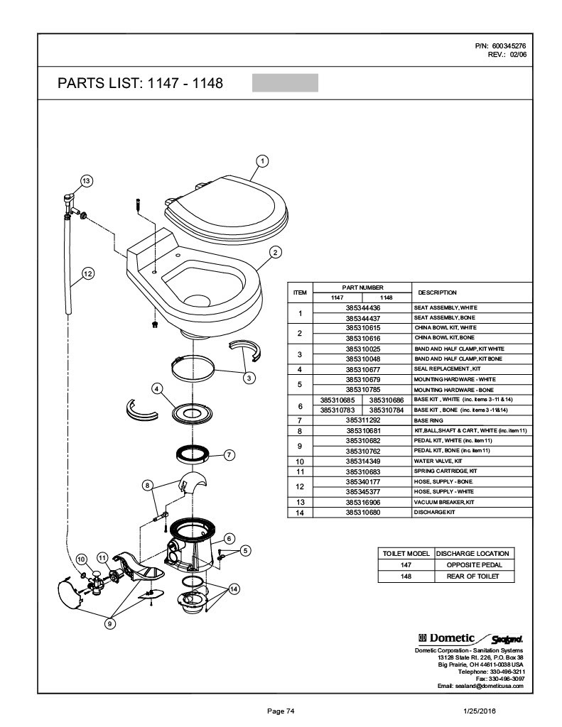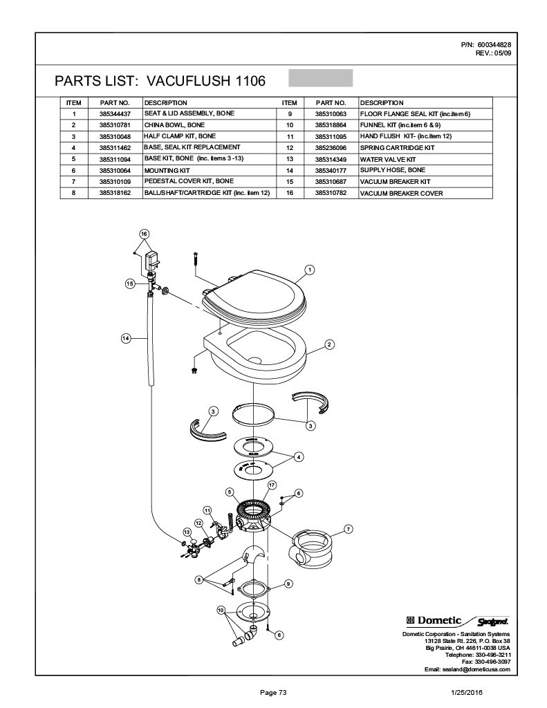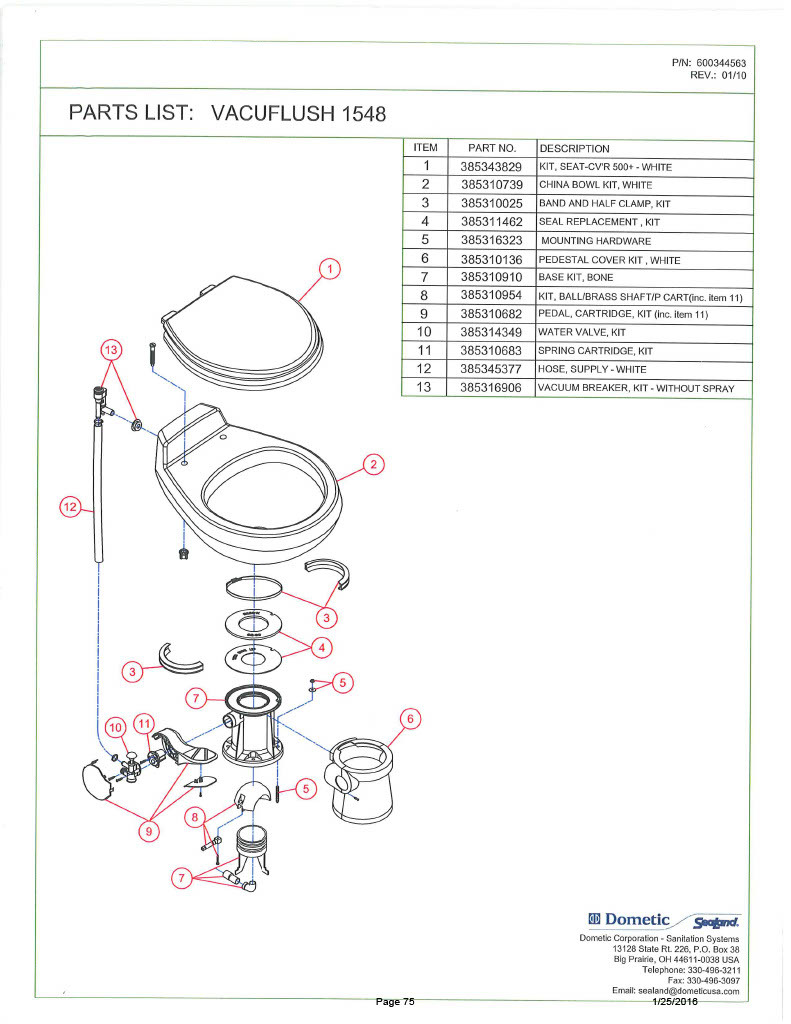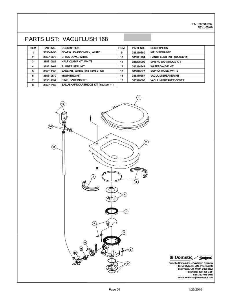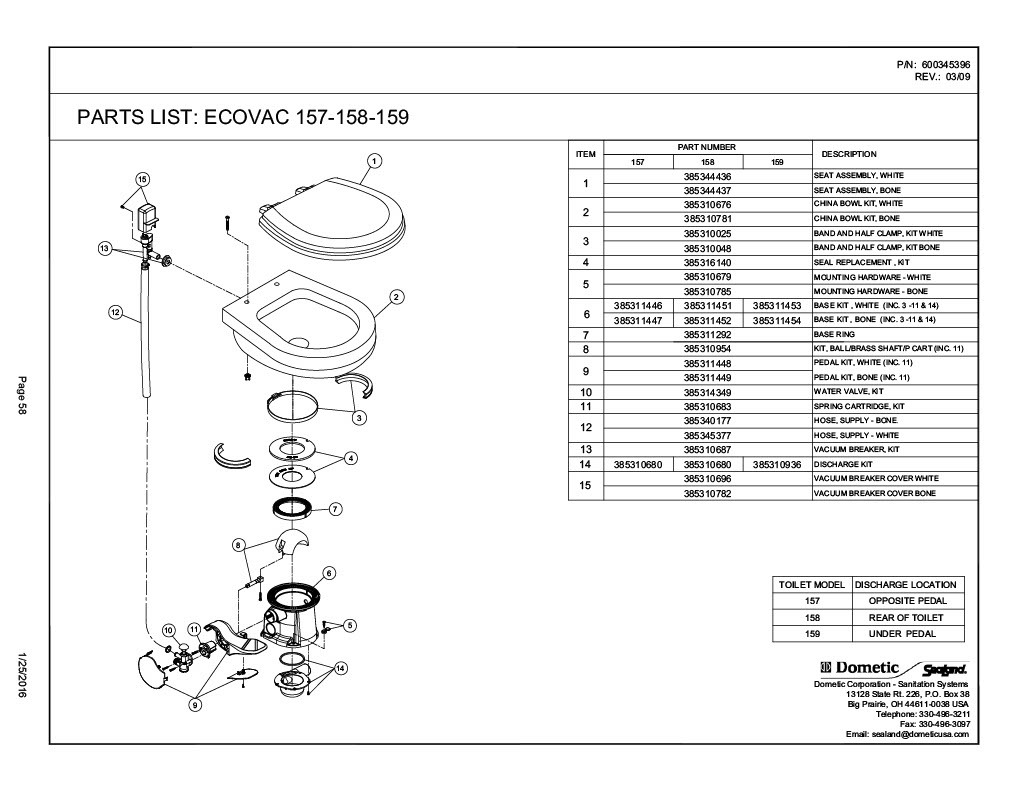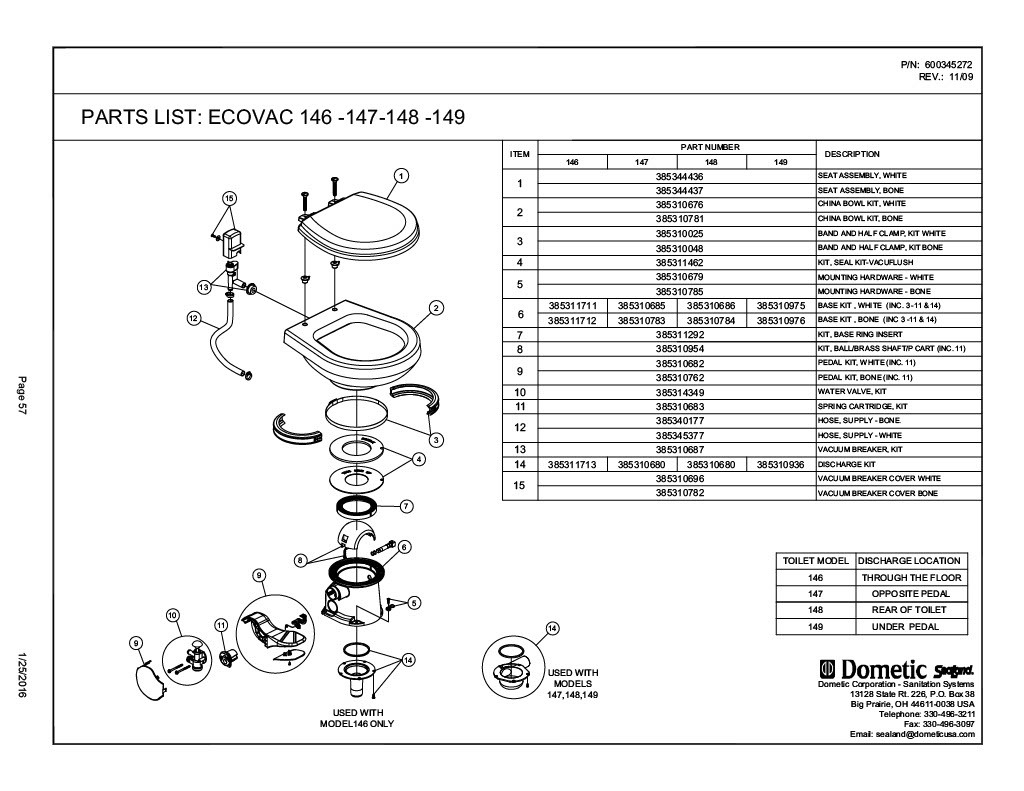 Dometic® (SeaLand) VacuFlush® and EcoVac® Toilet Parts Diagrams
