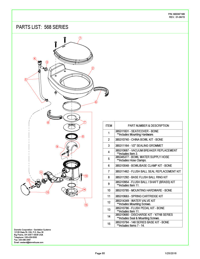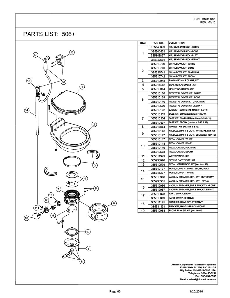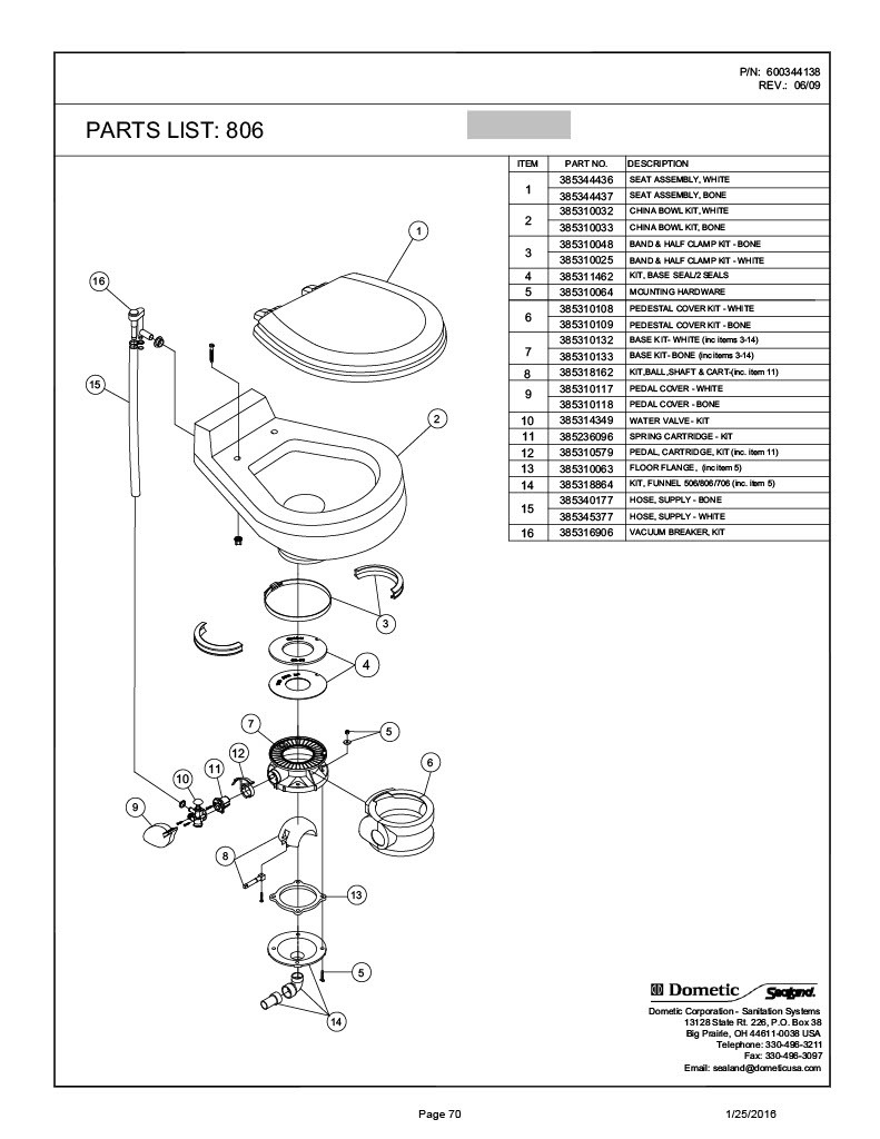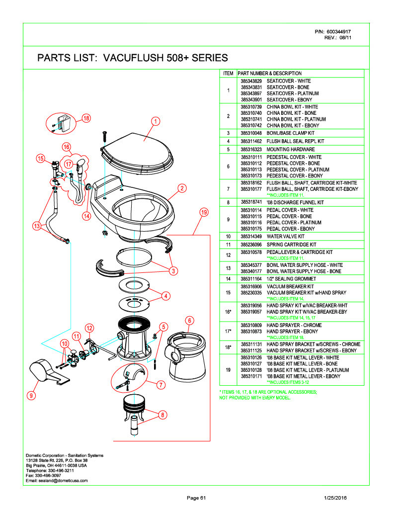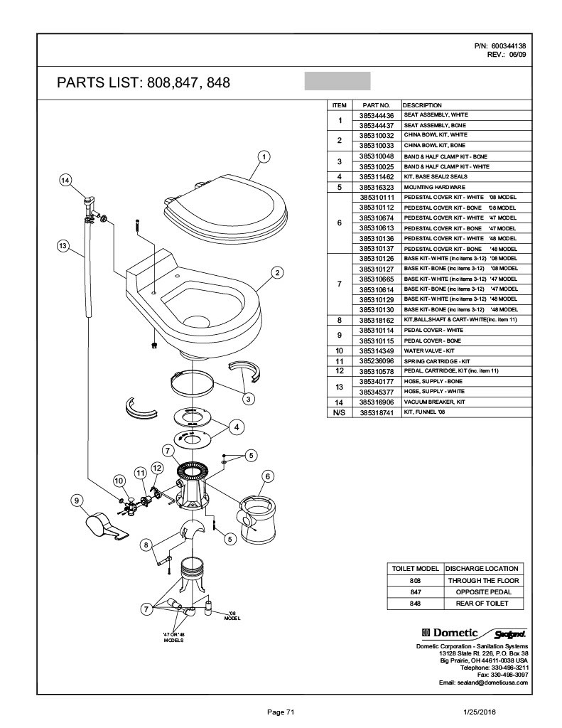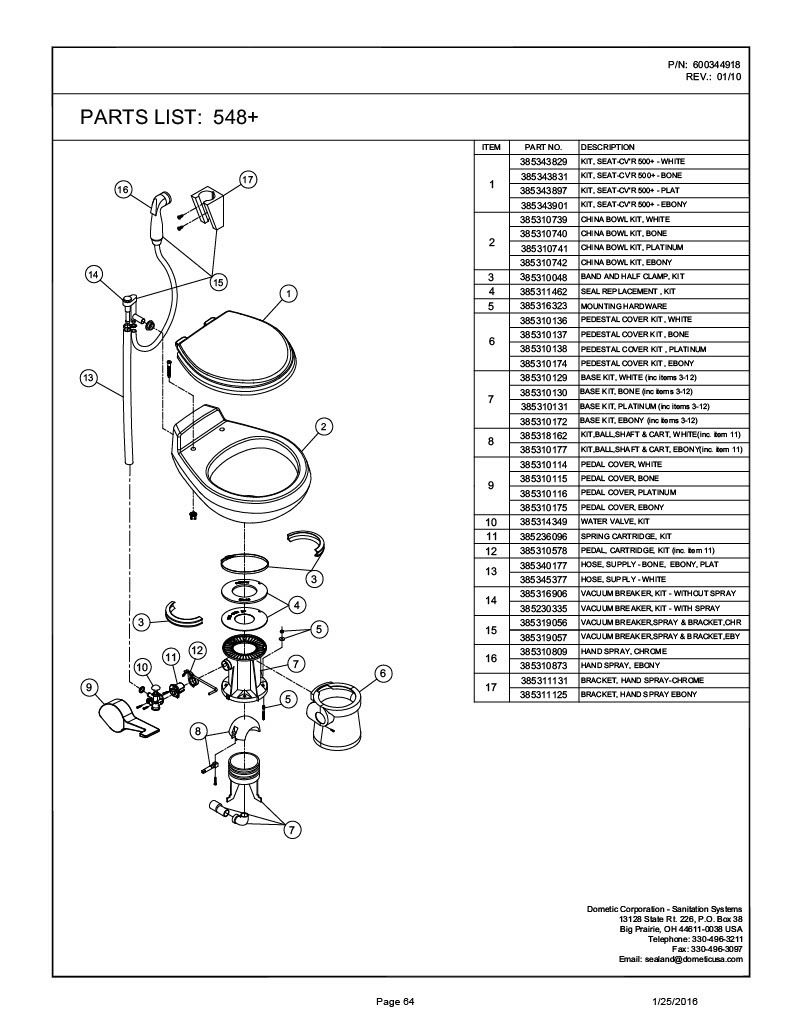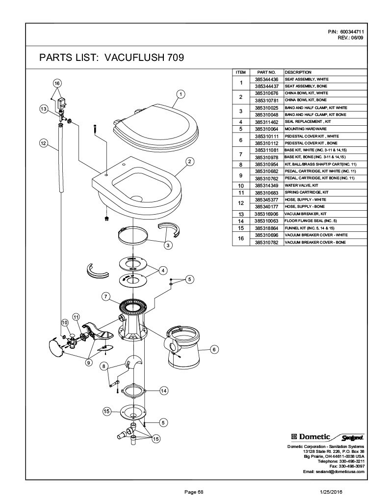 Dometic® (SeaLand) VacuFlush® and EcoVac® Toilet Parts Diagrams