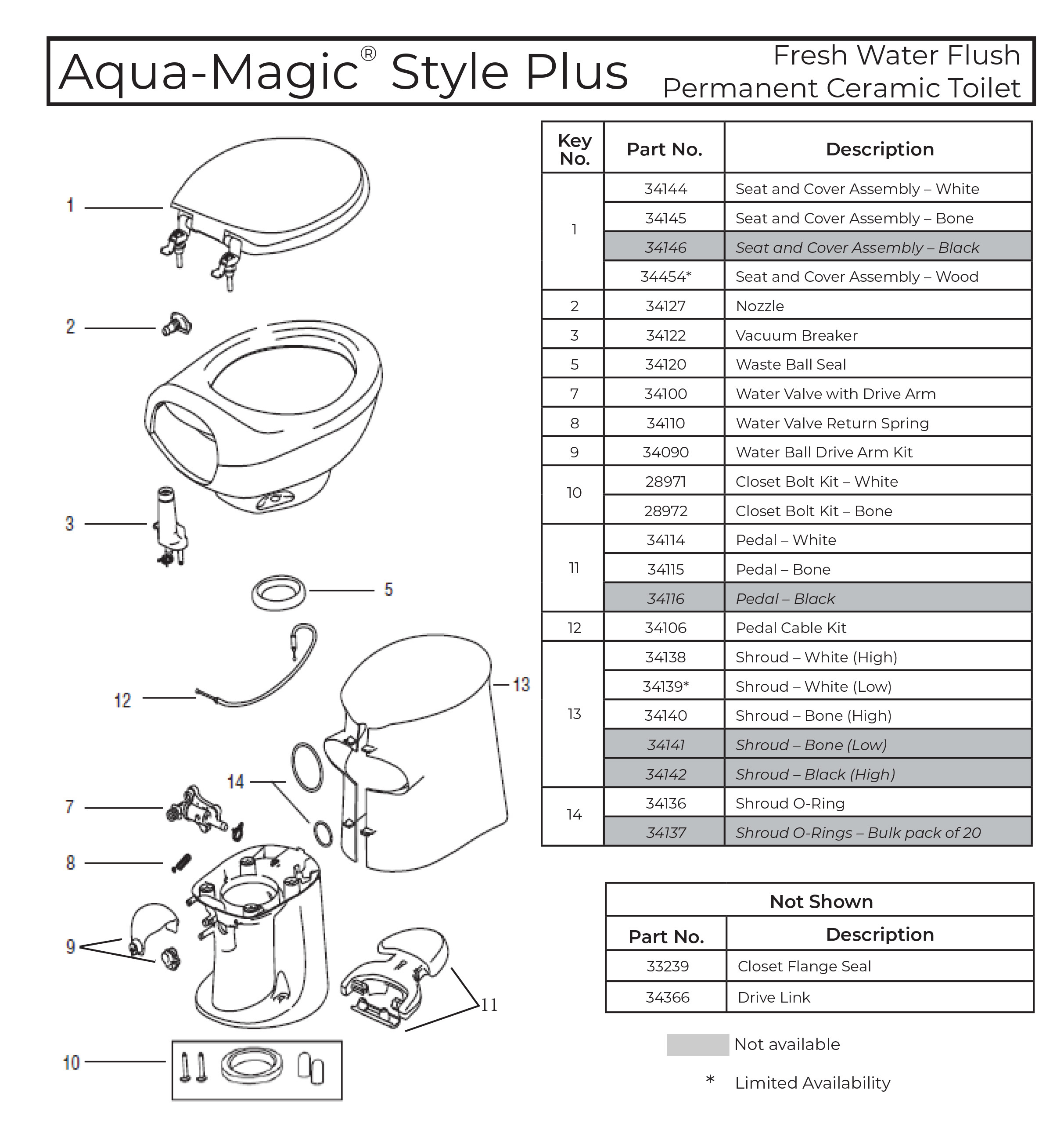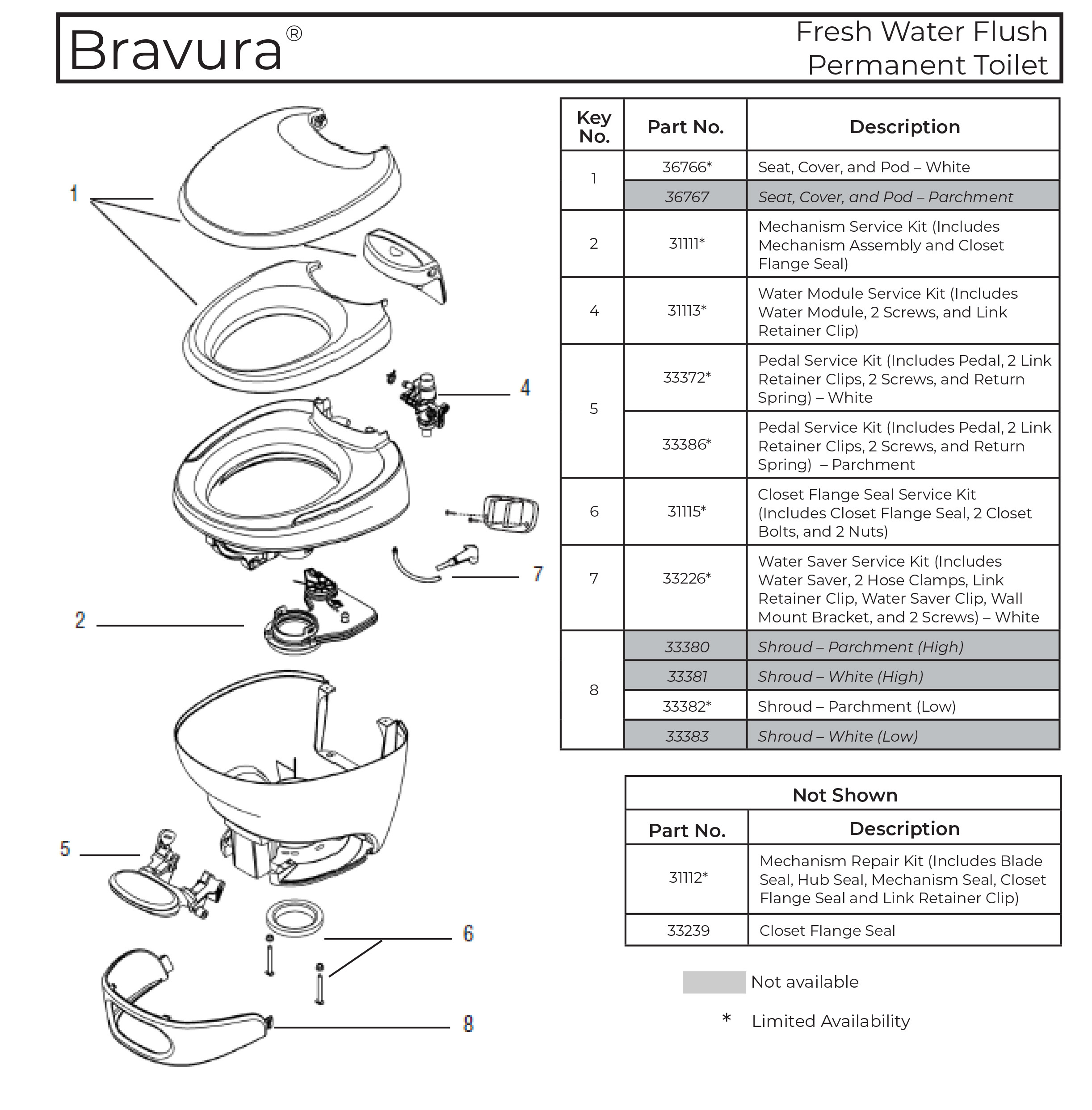 Thetford RV Toilet Parts Diagrams (Current Models)