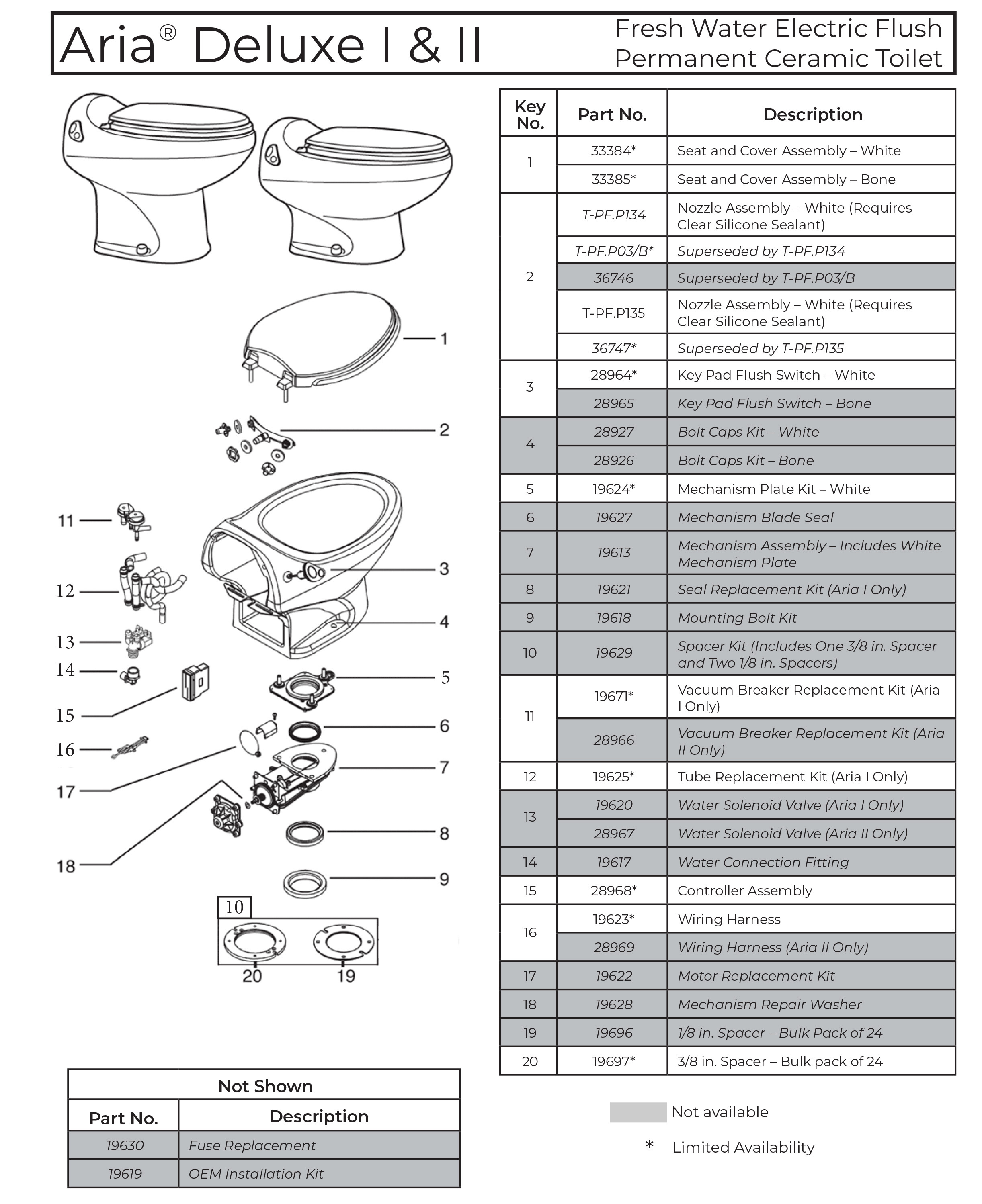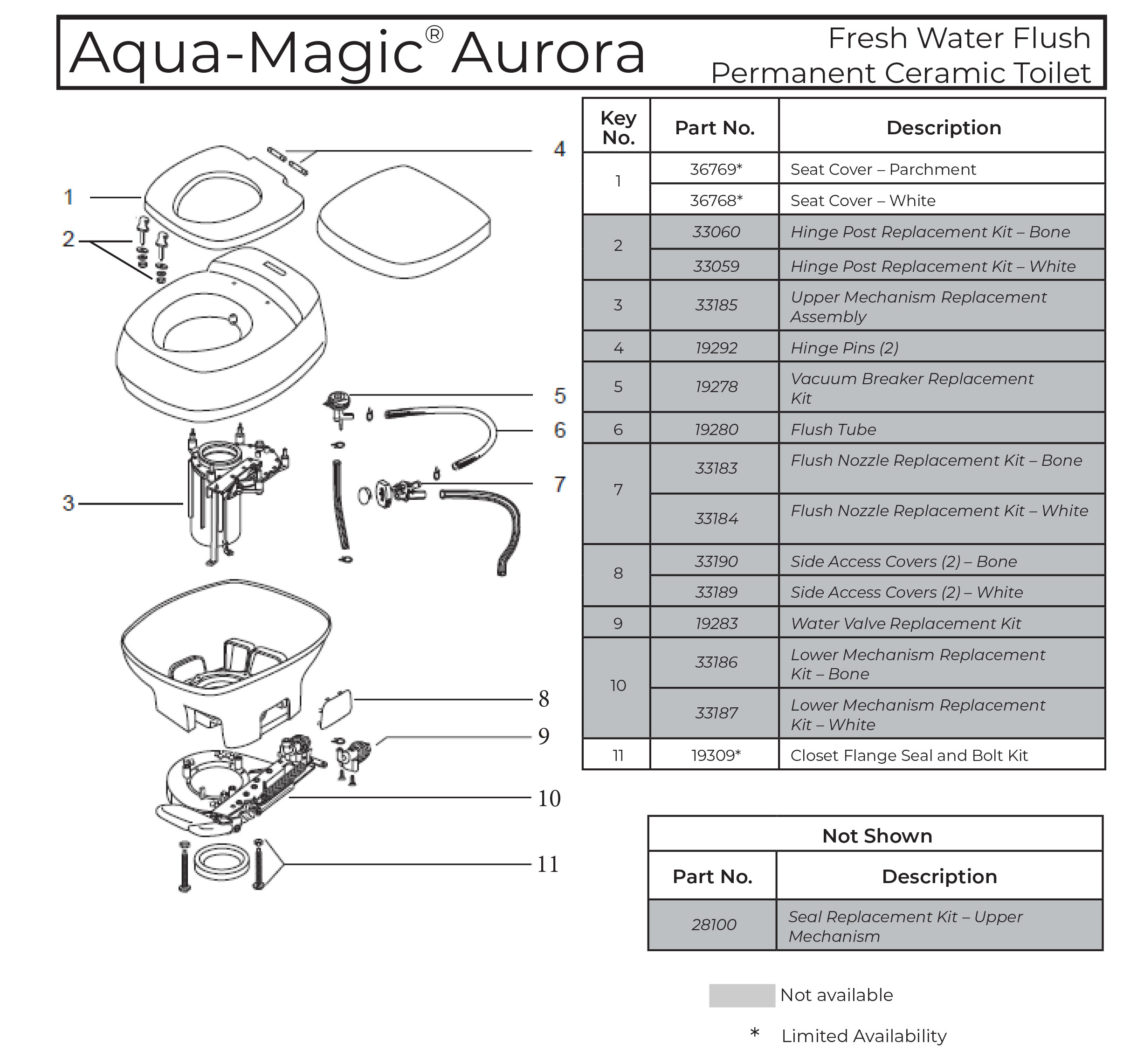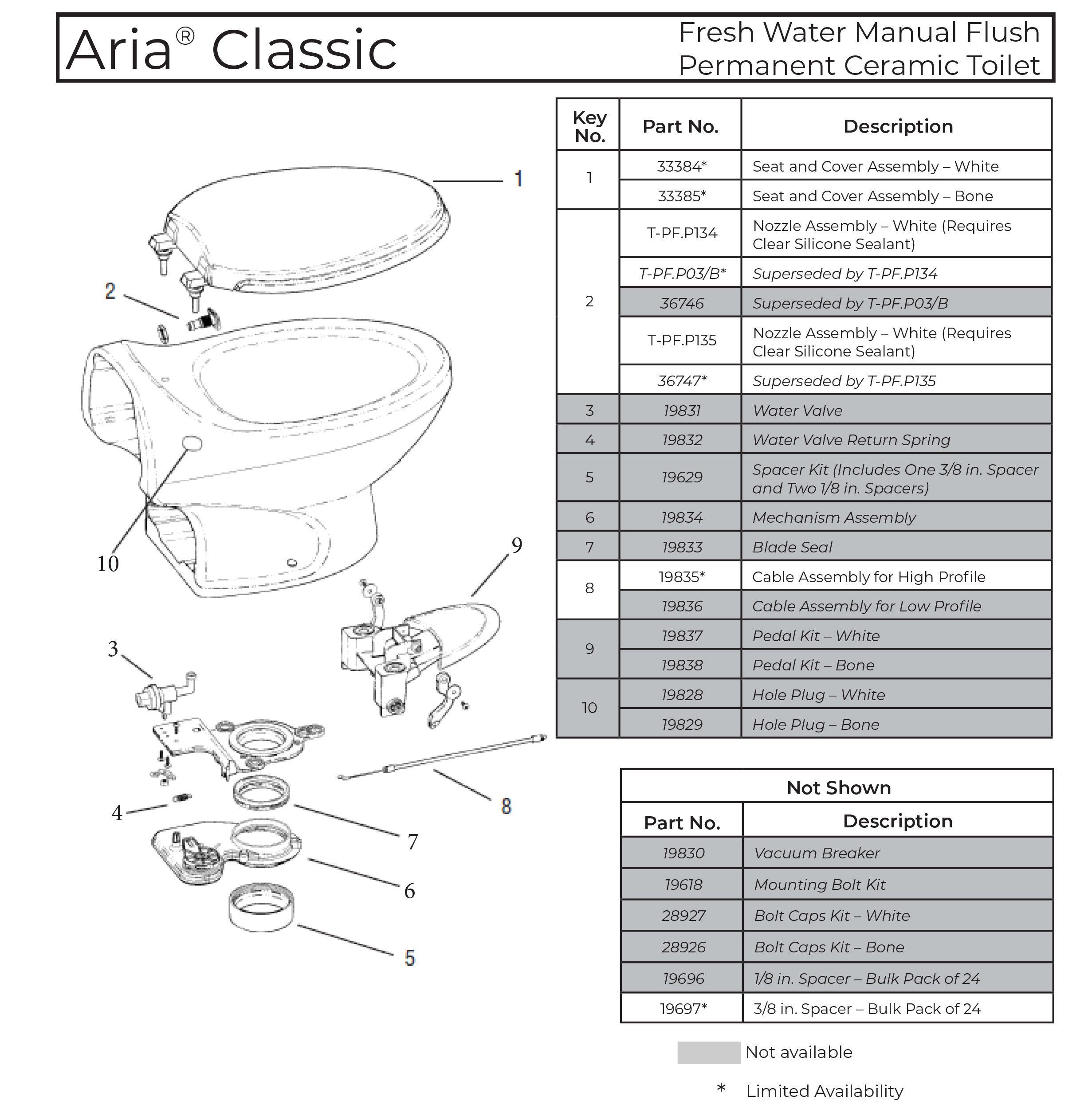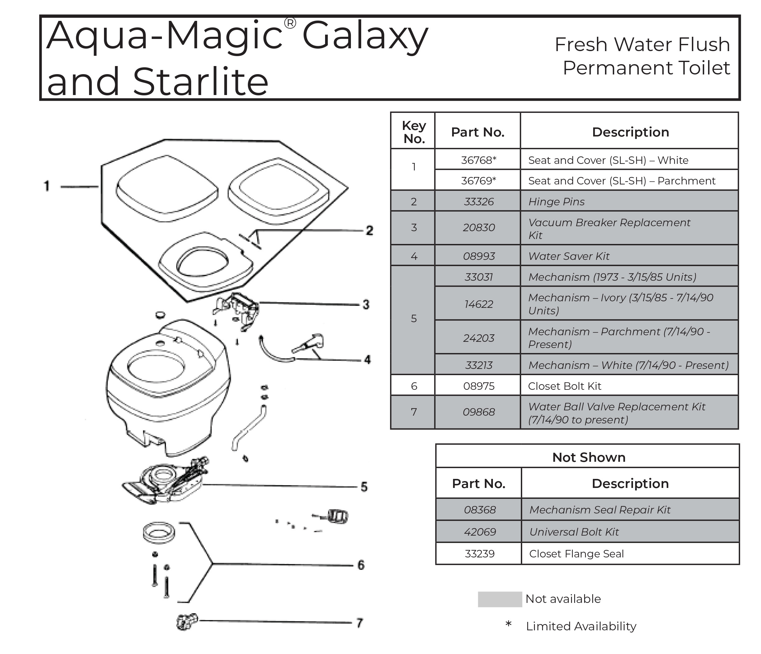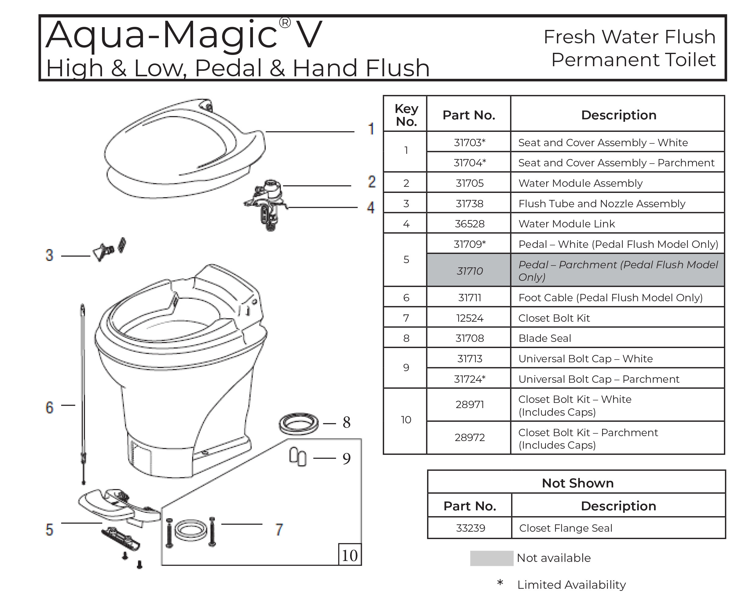 Thetford RV Toilet Parts Diagrams (Discontinued Models)